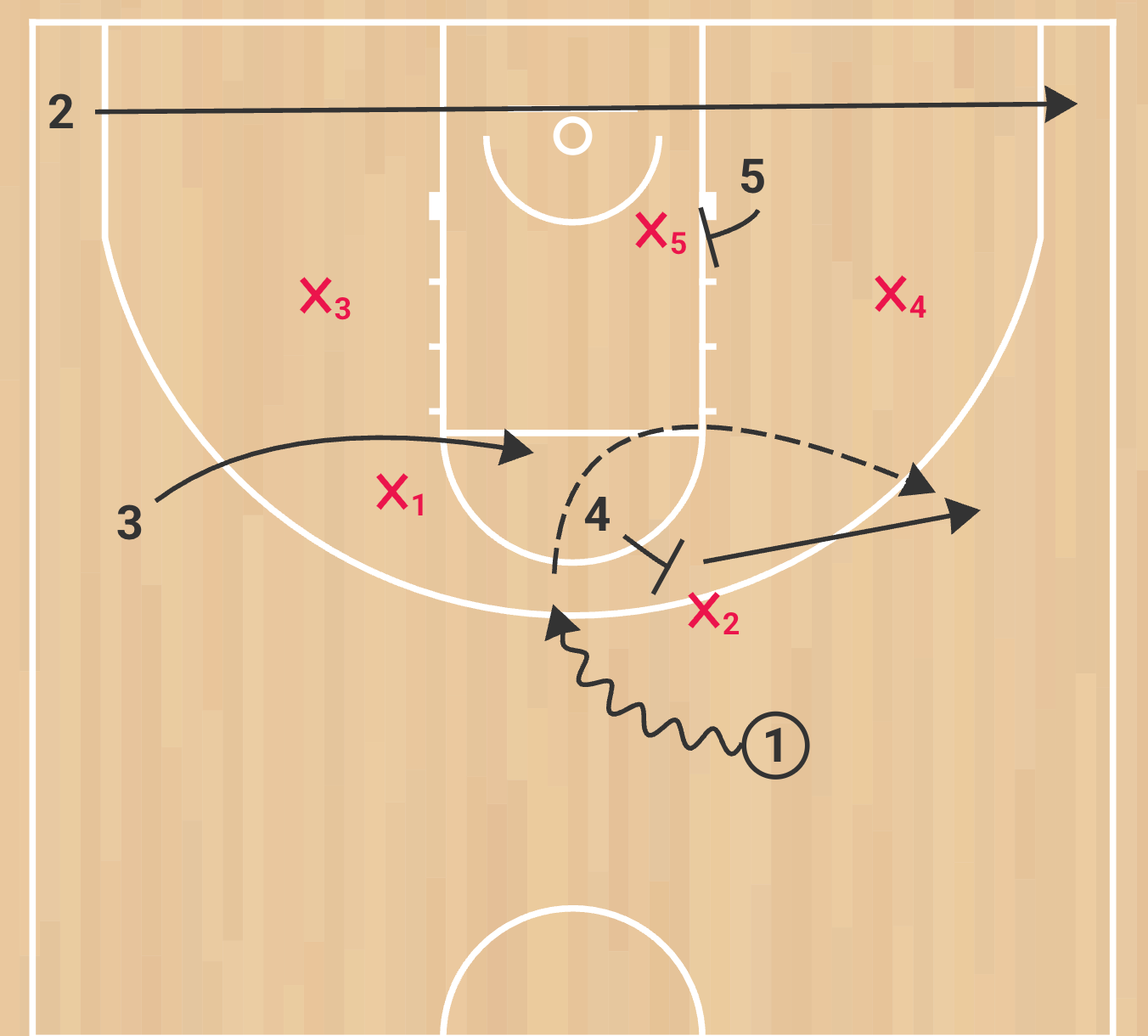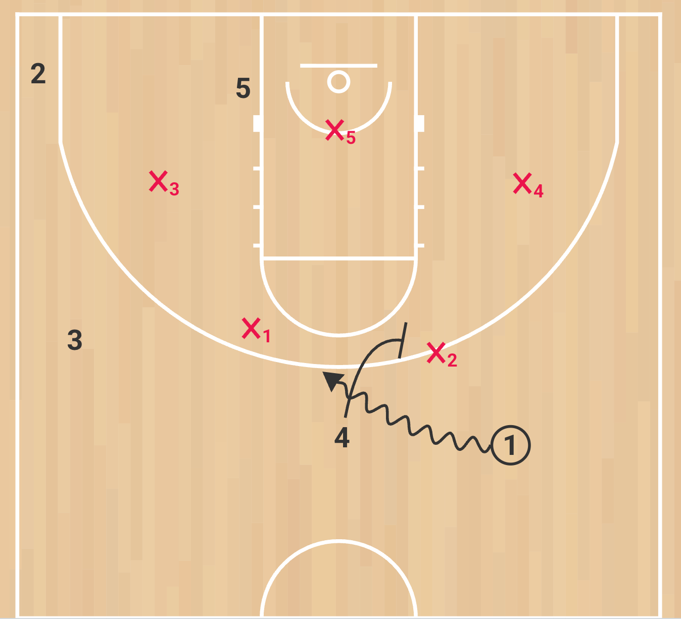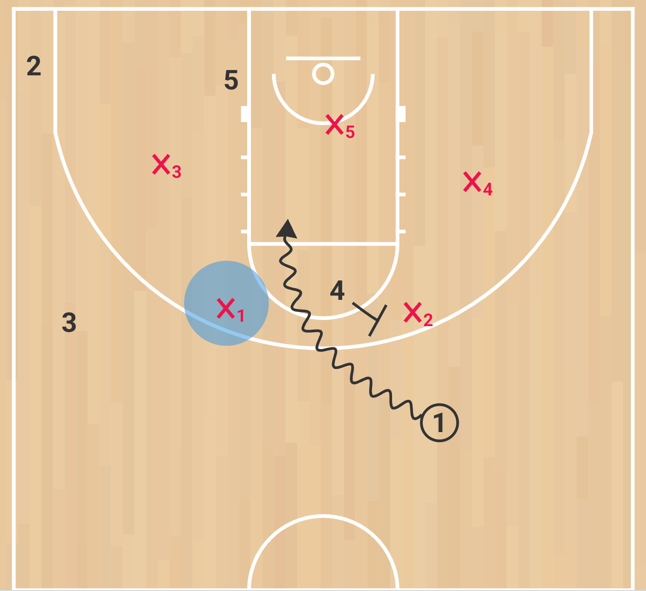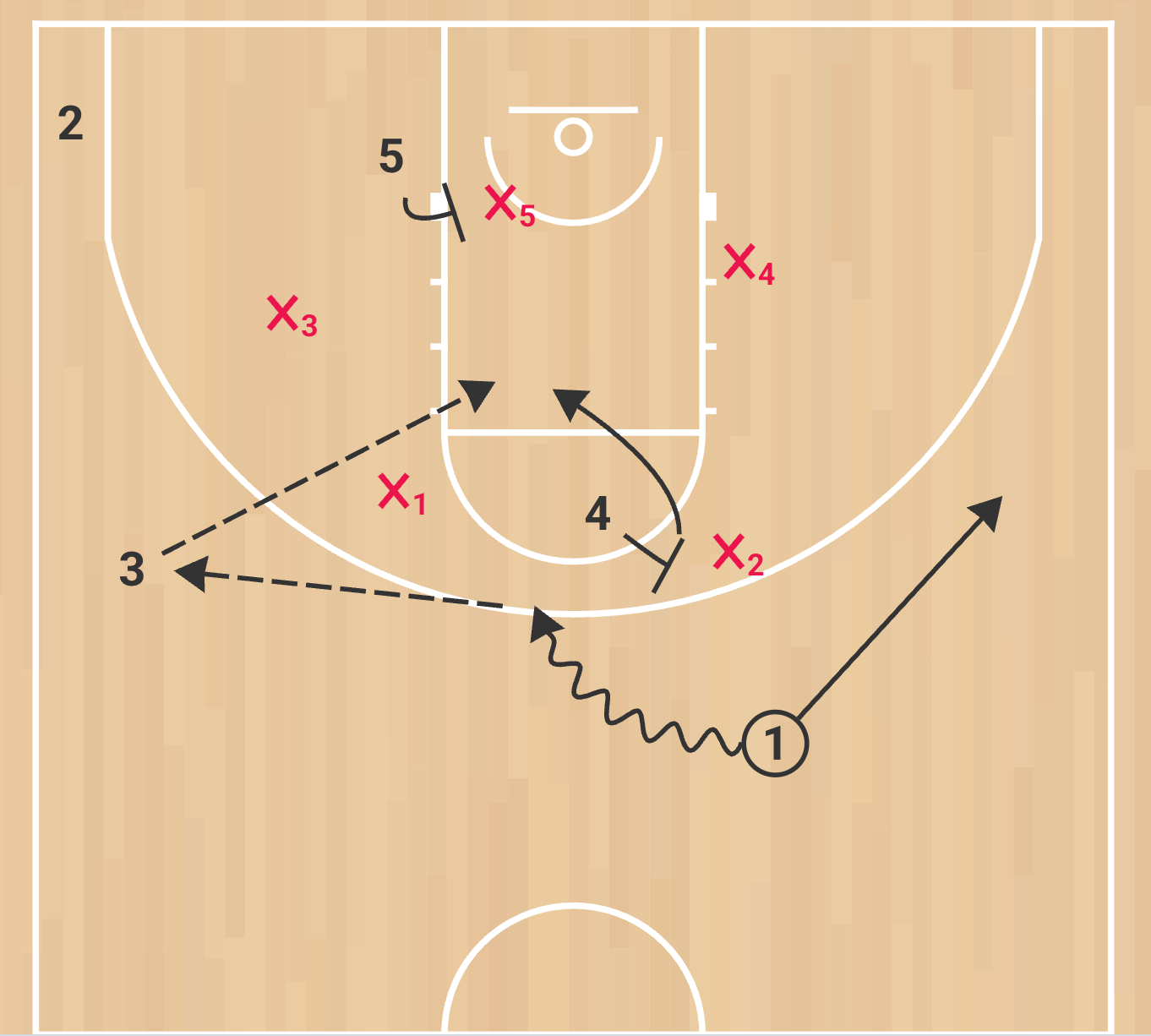 Same concepts and reads apply here. You’re reading what the x4 does and can attack, throw high post, shot or one more.